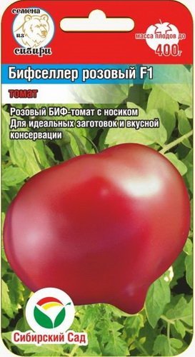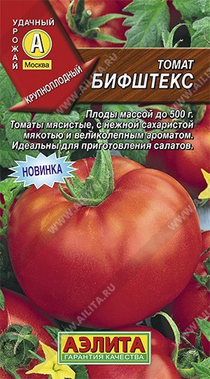 Раннеспелый биф-томат для любителей крупноплодных сортов. Плоды крупные, мясистые, массой 300-400 г, без зеленого пятна у плодоножки, с небольшим количеством семян. Содержание сухих веществ повышенное.
