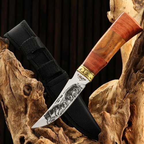 Нож туристический Схватка в чехле 23см с узором, рукоять дерево