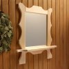 Такое зеркало подойдёт для бани и сауны. Дерево не выделяет вредных веществ при нагревании и подходит для помещений с высокой влажностью.