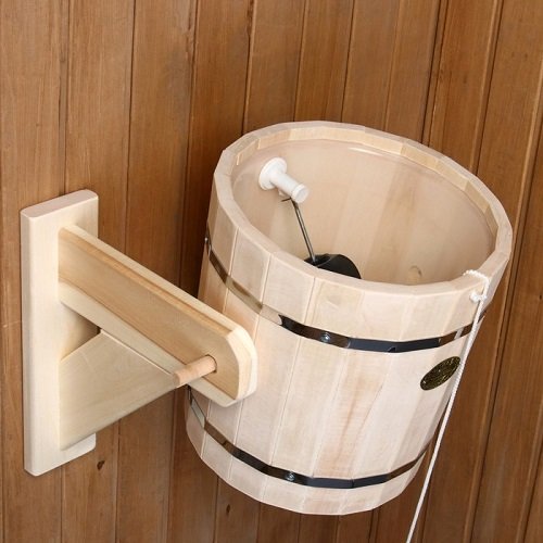 Обливное устройство с пластиковой вставкой изготовлено бондарным способом из отборной древесины липы.