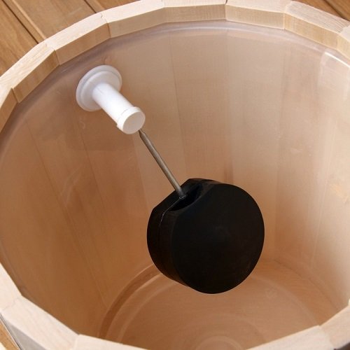 Пластиковая вставка избавляет от необходимости предварительной подготовки емкости перед использованием, когда требуется время для набухания древесины, чтобы закрыть зазоры между деталями конструкции, и значительно продлевает срок службы ёмкости.