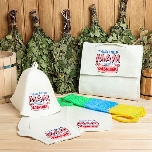 - Составляющие набора: портфель, коврик, рукавица, мочалка, шапка.