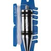 Наконечник отвеса задвигается внутрь, что значительно снижает риск получения травмы и повреждения поверхностей при падении отвеса. Кончик отвеса не оставляет царапин на поверхности при разметке и позволяет проводить ее с высокой точностью. Эластичные накладки защищают поверхность стен от механических повреждений. Вырезы на пластине позволяют наглядно проверить вертикальность стен. Поверхность отвеса хромирована для защиты от коррозии.