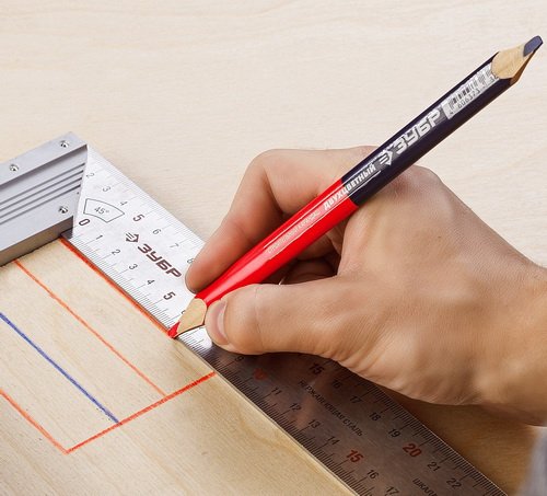 Двухцветный строительный карандаш имеет овальную форму, что позволяет ему не скатываться с наклонных поверхностей.