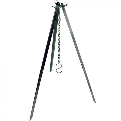 Состоит из треноги, цепи и подвеса. Изготовлен из нержавеющей стали 0,8 мм. С помощью цепи можно отрегулировать высоту размещения котелка или походного чайника над костром. Чехол в комплекте делает перевозку набора удобной. Длина поры треноги - 1 м.