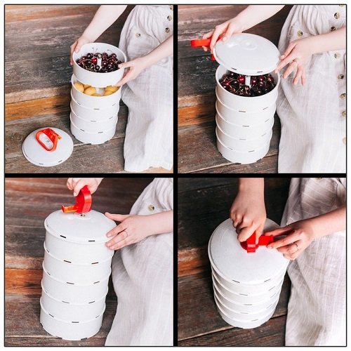 Пяти секционная конструкция сохраняет ягоды целыми. Ягоды не перемешаются и не помнутся!