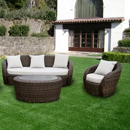 В последнее время все большее предпочтение отдается искусственному материалу - полиротангу, который ничуть не уступает натуральному. Это современный, экологически чистый полимер, полученный методом экструзии. Такая плетеная мебель устойчива к атмосферным осадкам и перепаду температур.