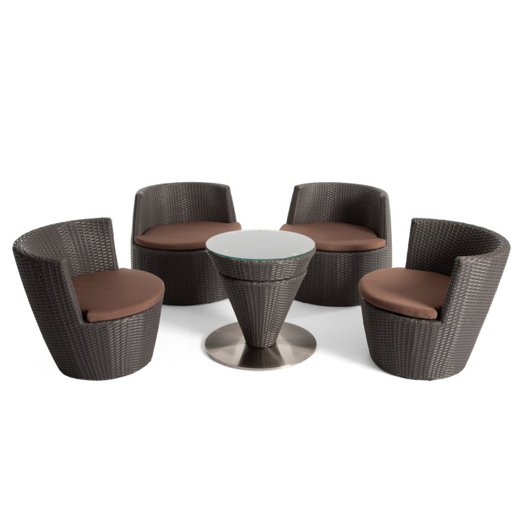 Коллекция Аляска это целый набор удобной и неординарной мебели. 4 кресла и столик для чая, в считанные минуты собираются в красивую башенку, которая послужит скульптурным украшением патио или сада. Имея такую коллекцию, вопрос, куда разместить друзей – для Вас останется в прошлом.