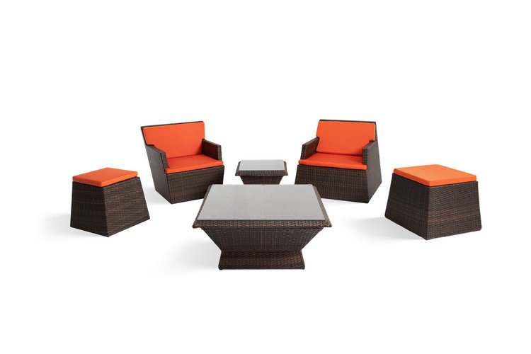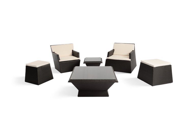 Коллекция ГОНГ-КОНГ - 2 Кресла, 2 пуфа, стол большой, стол малый (тёмно-коричневый)