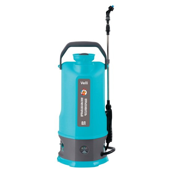 Аккумуляторный распылитель Velli с баком объемом 8 литров. Подойдет для работы даже на балконе. Легкий и компактный, не требует усилий при использовании.