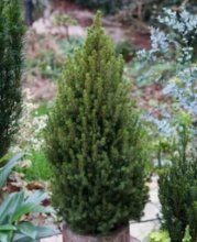 Самый популярный сорт канадской ели – «Коника» (Conica). Это невысокое дерево с красивой конусовидной кроной высотой 3-4 метра, ее диаметр –2 метра. Садоводов привлекает пышная крона и нежная на ощупь, светло-зеленая хвоя – это один из самых декоративных видов канадской ели. Выращивать лучше на солнечном участке, избегать переувлажнения почвы.