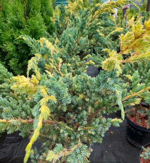 Сорт довольно редкий, необычайно декоративен! Крона у можжевельника "Golden Flame" достаточно плотная и широкораскидистая. Скелетные ветви у растения расположены косо. В молодом возрасте довольно густо ветвится.