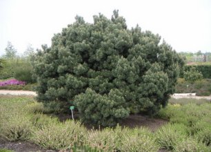 Если у вас на участке мало места, советуем купить сосну обыкновенную Ватерери. Это карликовый вид, который достигает в высоту не более 3-4 метров. Отличается густой, плотной, шарообразной кроной, хвоинки собраны в пучки по 2-3 штуки, хвоя очень красивого сине-зеленого цвета. Ее можно ежегодно обрезать, чтобы формировать крону. Для высадки рекомендуется выбирать места с небольшим затенением. По морозостойкости сосна Ватерери даст фору другим сортам, легко выдерживает морозы до – 40 градусов.