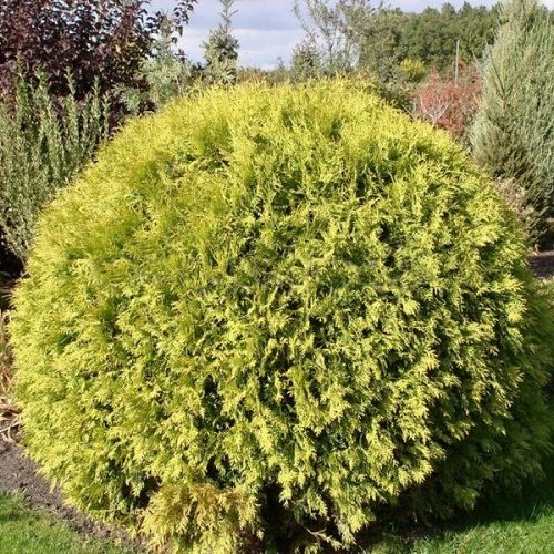 Умеренно растущая шаровидная форма туи западной, достигает 1,5 м. высотой и около 1,5 м. шириной. В 10 лет достигает более 1 метра в высоту и ширину.