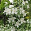 Чубушник гибридный “Силберреген”. Простые, крупные, ослепительно-белые, c ароматом земляники цветки, обильно покрывающие компактный округлый кустарник.