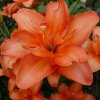 Цветы крупные,махровые, сочного красно-оранжевого цвета, с золотистыми разводами. Центр у лепестков более светлый. Цветет в июле-августе.