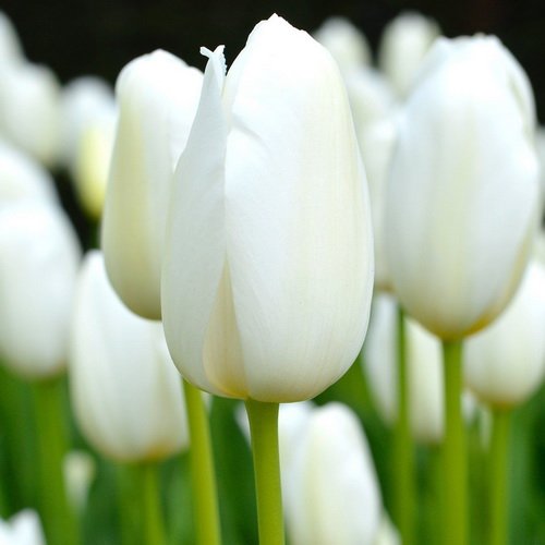 Тюльпан Кэтрин - аристократический сорт луковичных многолетников с восхитительными кремово-белыми цветами. Форма цветков – бокаловидная, лепестки могут иметь еле заметную окантовку, по цвету напоминающую слоновую кость.