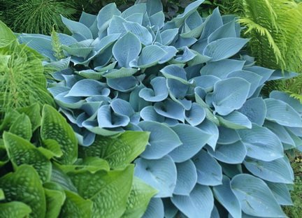 Это растение с серебристо-сизыми сердцевидными листьями, которые испещрены темно-зелеными прожилками. В высоту вырастает до 40-50 см, лучше всего растет в полутени. Щитковидные соцветия нежно-голубого цвета.