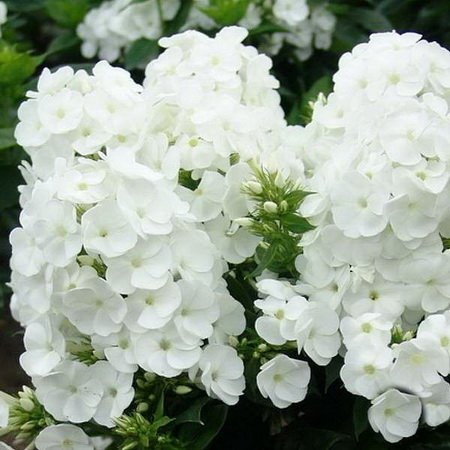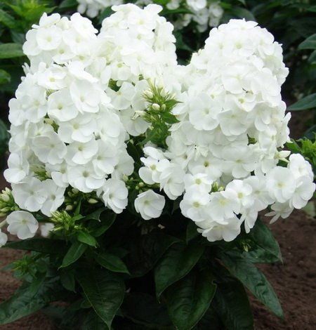 Очаровательный низкорослый флокс с белоснежными цветами. Цветки чисто белые, в плотных соцветиях, не портятся от дождя. Куст невысокий, прочный. Цветение обильное июль-сентябрь. Листья темно-зеленые. Устойчив к болезням. Обладает приятным ароматом.