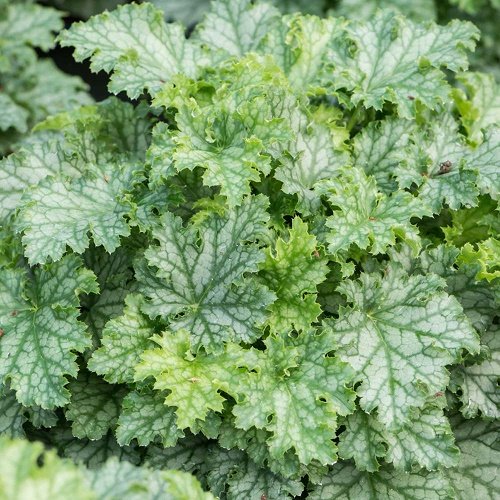 Листья плотные, рифленые, светло-зеленые рифленые листья с темно-зелеными прожилками и серебряной накладкой.
