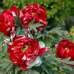 Относительно новая группа пионов - ИТО – гибриды. Они отличаются хорошей зимостойкостью, кусты не распадаются под тяжестью соцветий. К ним относятся такие виды, как «СкарлетХевен», «БордерЧарм», «Хиллари».