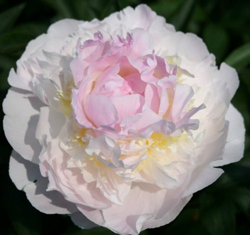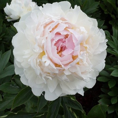 Пион травянистый Блаш Квин (Blush Queen) - изумительный по красоте пион. Цветок кремово-белый  с желтыми отражениями на заднем плане и слегка розовым в центре.