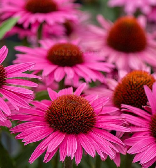 Эхинацея Перл Дарк Пинк (Pearl Dark Pink) - цветки розовые. Кустик высотой 35 см, а цветоносы могут достигать 45 см, ширина куста 30 см.