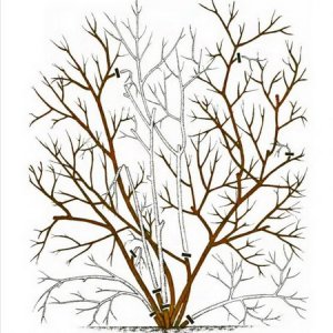 Первую подрезку растений проводится примерно на четвертый год после посадки, чтобы удалить чрезмерно кусистые приросты, когда ягоды на старейших побегах становятся меньше.