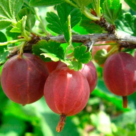 Плоды крыжовника довольно крупные – от 4 до 8 гр, имеют округлую форму, что объясняет название, окрашены в тёмно-красный, иногда вишнёвый цвет.