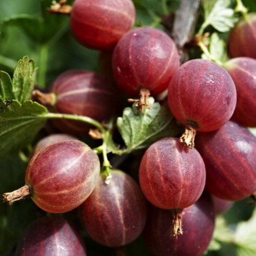 Ягоды крыжовника довольно крупные. Средняя масса составляет 3,9-6 г. Форма ягод правильная – округлая или округло-овальная с гладкой поверхностью и легкой опушкой. Спелый крыжовник наделен красивым окрасом – темно-вишневый, равномерный, с едва заметными прожилками. Кожура у ягод тонкая, но прочная с легкой бархатистостью.