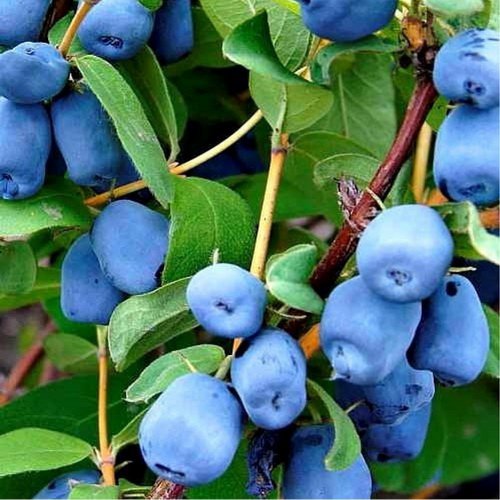 Плоды созревают на плодоножке средней длины. Их форма цилиндрическая, средняя длина составляет 1,7 см. Вес ягод - 0,7–1,4 г. Кожура тёмно-синяя со светлым налётом. Вкус жимолости сладкий с кислинкой.