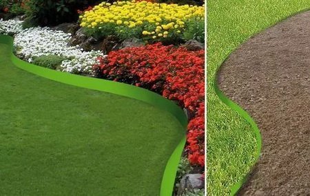 С помощью бордюрной ленты можно легко придать любую геометрическую форму, по ней можно ходить, катать садовую тележку, стричь траву любыми газонокосилками.