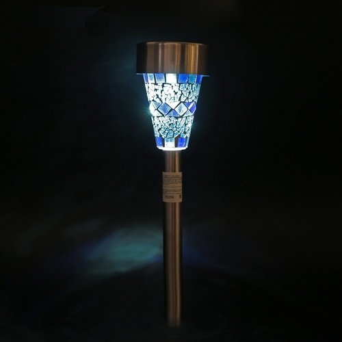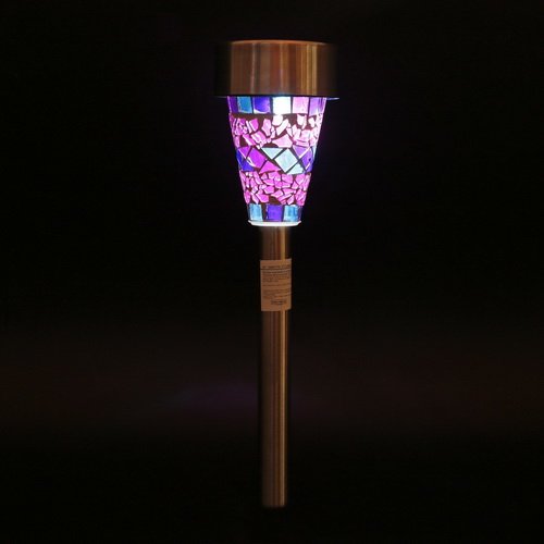 Декоративный рисунок мозаики смотрится очень интересно днем и тем более ночью. С помощью солнечной батареи он заряжается днем и использует накопившуюся энергию ночью. Заряда хватает до 6 часов работы, а зарядка происходит за 8 часов, для чего вполне достаточно светового дня в нашей широте.