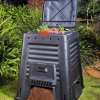 Компостер с вентиляционными отверстиями отлично подходит для приготовления удобрения в весенне-летний период. Органические отходы помещаются через крышку сверху. Со всех сторон расположены дверцы для выемки компоста. Компостер выполнен из вторсырья, устойчив к ржавчине, не нуждается в особом уходе.