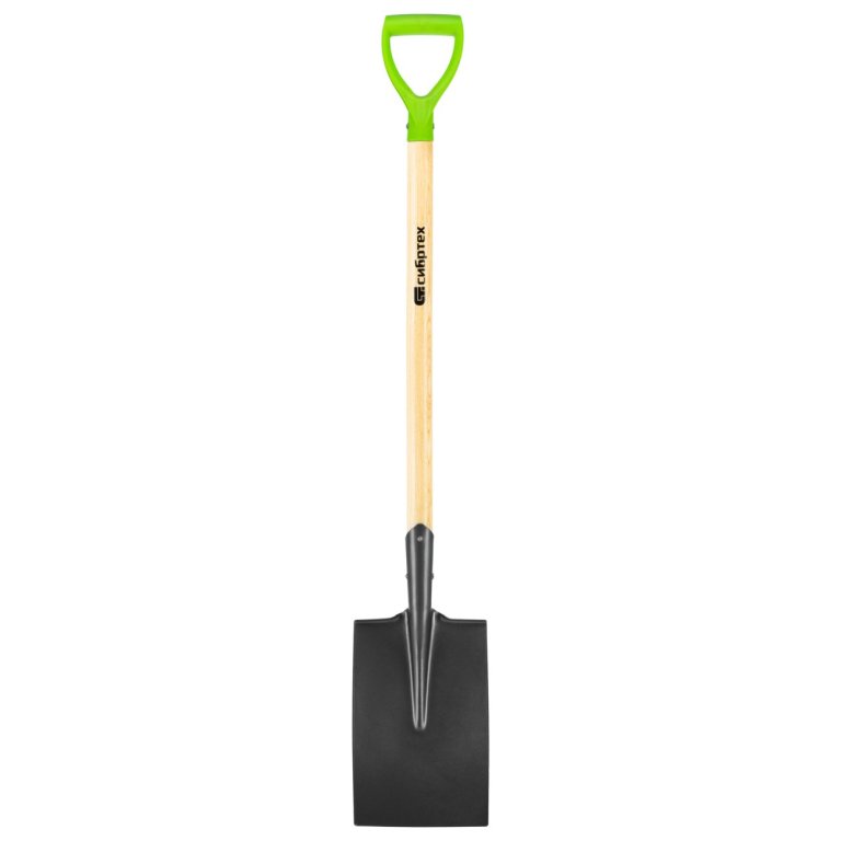 Прямоугольная лопата Сибртех размером 195 х 290 х 1150 мм, с деревянным лакированным черенком, предназначена для проведения земляных работ.