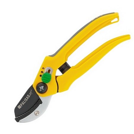 Секатор с наковальней, оснащенный боковым фиксатором с функцией регулировки ширины хвата.