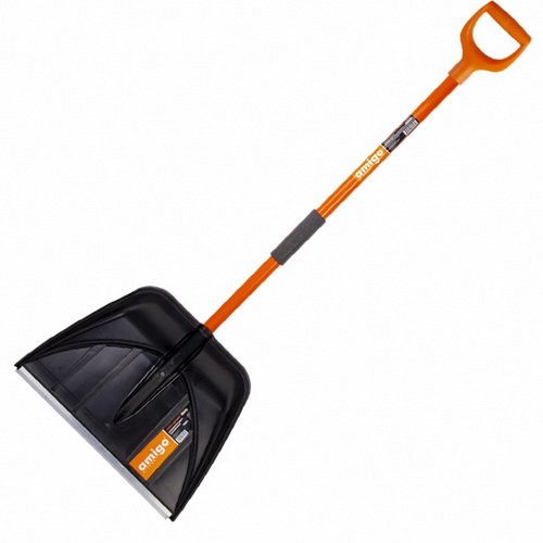 Прочный пластиковый ковш с ребрами жесткости, черенок алюминий с софт вставкой, удобная D-ручка.
