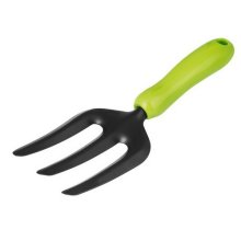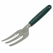 - Вилочный. Слегка изогнут, на конце два небольших плоских зубца. Позволяет с легкостью извлекать корни, может использоваться для рыхления почвы.