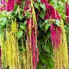Смесь амарантов метельчатого и хвостатого. Мощные растения высотой около 100 см украшены эффектными соцветиями, напоминающими перья страуса или хвост лисицы.