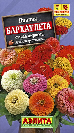 Смесь включает циннии разнообразных расцветок и форм. Кусты цветут обильно, длительно, с июня до заморозков. Растения крепкие, выносливые, неприхотливые, несложные в уходе, устойчивые к болезням культуры и погодным стрессам. Идеальны для декорирования цветников солнечной экспозиции.