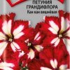 Превосходная петуния с бархатными кружевными цветами. Растение высотой 40 см, устойчиво к неблагоприятным погодным условиям. Цветы вишневого цвета с контрастными белыми пятнами в центре цветка.