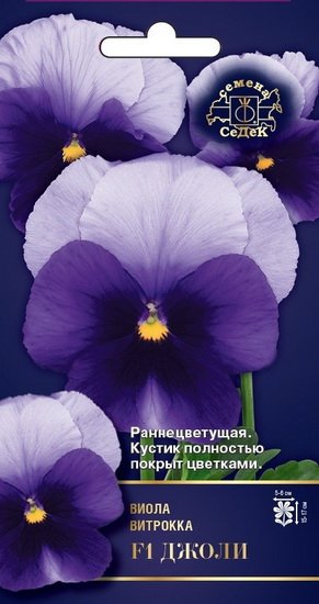 Традиционно любимое всеми двулетнее травянистое растение семейства Фиалковые. Цветки диаметром 5-6 см, бархатистые, лепестки бело-сиреневые, у основания трех нижних – крупные черные пятна. Кустик компактный, высотой 15-17 см, полностью покрыт цветками.