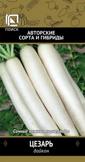 Корнеплод длиной 35-40 см, цилиндрический, белый, с приятным вкусом редиса.