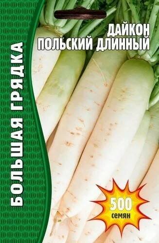 Сорт среднеспелый (60-70 дней), отличается высокими вкусовыми качествами. Образует корнеплод длиной 40-60 см и до 9 см в диаметре, с округлой головкой и белой кожурой, массой до 1,5 кг, который на 3/4 погружен в почву.