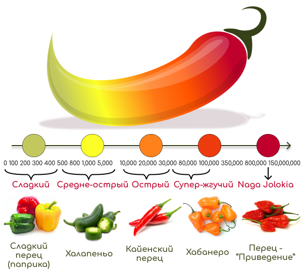 По шкале Сковилла его жгучесть варьируется от 1,2 до 2 млн единиц.