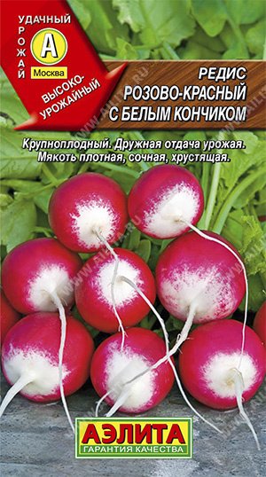Раннеспелый сорт (23-27 дней). Корнеплоды округлые и округло-плоские, массой 18-20 г, розово-красные, в нижней части белые. Мякоть белая, иногда слабо-розовая, сочная, вкусная.