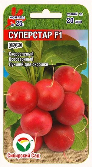 Скороспелый гибрид редиса голландской селекции для всесезонного выращивания в открытом и защищенном грунте. От всходов до технической спелости 19-21 день. Гибрид нейтрален к длине дня, устойчив к пониженной освещенности и цветушности, характеризуется дружным формированием урожая и выровненностью корнеплодов. Корнеплоды крупные (до 3 см в диаметре), округлой и округло-овальной формы, с гладкой кожицей ярко-красного цвета, средней массой 20-25 грамм. Мякоть белая, плотная, сочная, полуострого вкуса. Рекомендуется для использования в свежем виде. Урожайность2-2,5 кг/м2 .