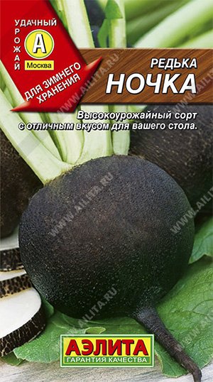 Среднеспелый сорт редьки европейской (68-75 дней от полных всходов до уборки). Корнеплод округлый, черный, массой в среднем 200 г. Мякоть белая сочная, с традиционным остро-сладким вкусом. Урожайность до 7 кг/м2. Рекомендуется для использования в свежем виде и длительного хранения в зимний период. Отличное народное средство лечения и профилактики простудных заболеваний.