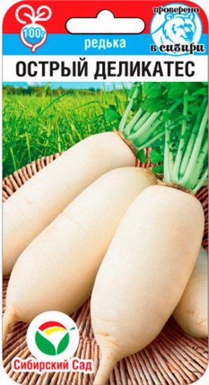 Раннеспелый (38-40 дней) сорт для выращивания на открытых грядах в весеннее-летний период. Отличается красивыми выровненными корнеплодами удлиненно овальной формы и приятным молочным оттенком кожуры и мякоти. Сорт полуострый, более нежный по вкусу по сравнению с редькой черной. Добавляет приятной остроты салатам, окрошке, может употребляться в качестве моно- закуски с укропом, маслом и солью.