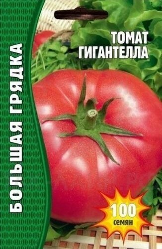 Томат «Гигантелла» - среднеспелый (досреднепозднего) крупноплодный сорт, благодаря чему плодоносит до поздней осени. Плоды плоскоокруглой формы, малиновой окраски, массой 200-400 граммов (первые плоды могут достигать веса 1 кг.). Растения мощные, высотой